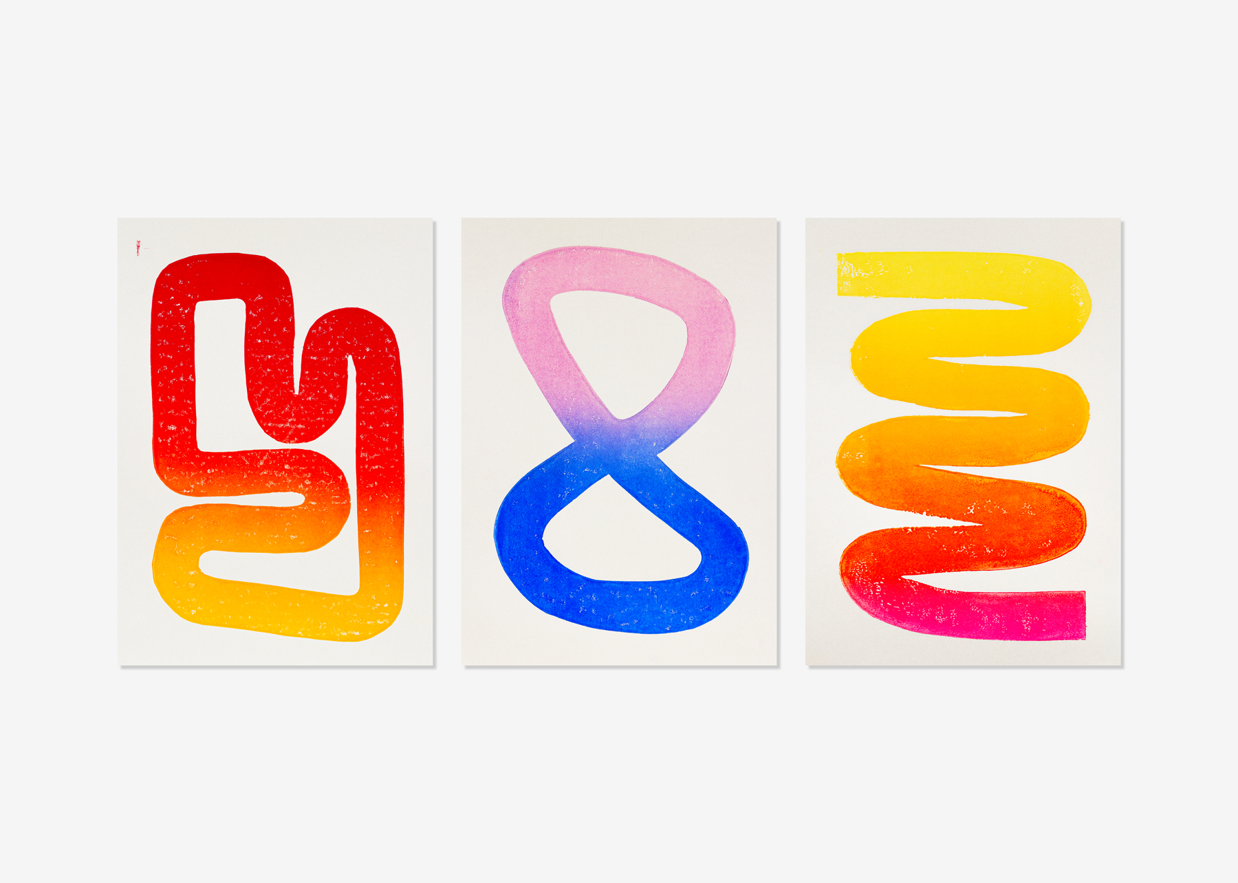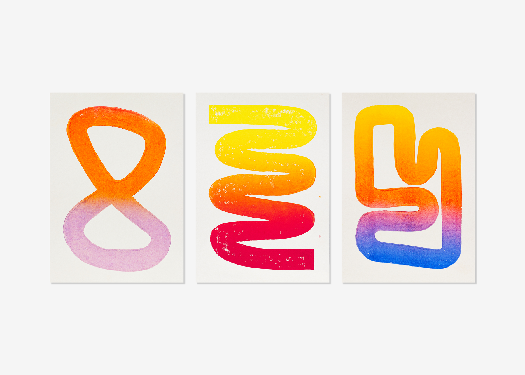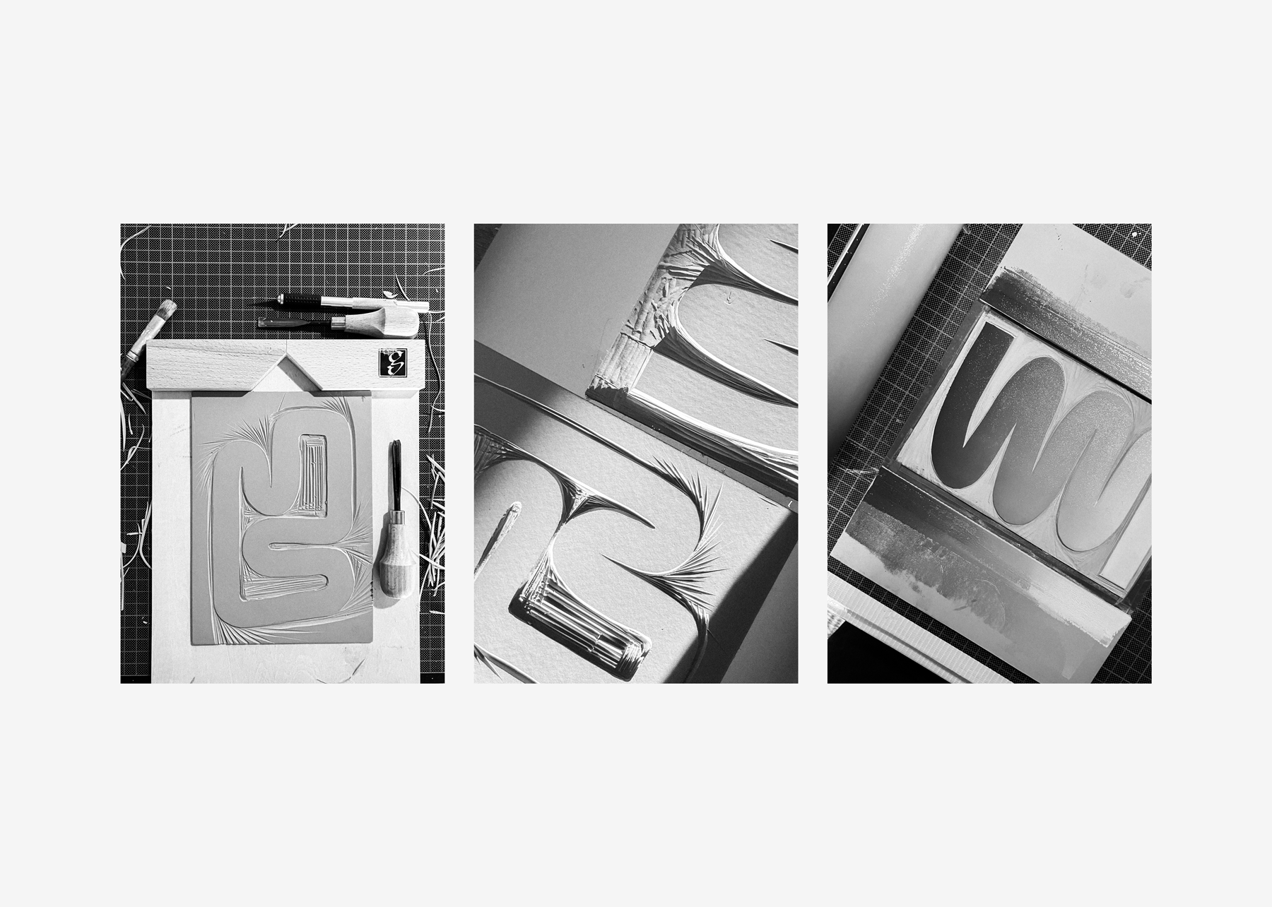 Zum Thema «Ein schwungvolles Jahr» wurden drei Linolformen von Hand geschnitzt und gedruckt. Der gesamte Entstehungsprozess erfolgte in Handarbeit, mit Augenmerk auf Nachhaltigkeit und Materialwahl.