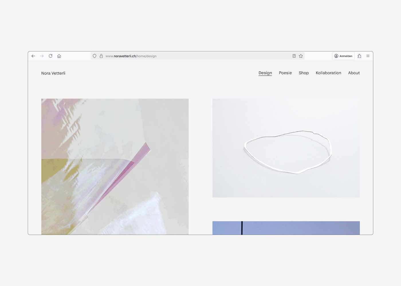 Für die Designerin Nora Vetterli durfte ich eine Website gestalten, die ihr künstlerisches Wirken ganzheitlich präsentiert – im Einklang mit ihrem Wesen und ihren Werten. Die feine Gestaltung ist geprägt von einer schlichten Ästhetik, die ihren Arbeiten Raum zur Entfaltung lässt. Und doch schwingt in ihr eine leise Nuance von Poesie mit. Aus dem Wunsch einer Website entwickelte sich schliesslich ein vollständiges Erscheinungsbild.